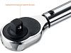 - Подпружиненный шарик в квадрате надежно удерживает торцевые головки или другие насадки, предотвращая их самопроизвольное соскальзывание во время работы.