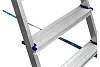 Конструкция выполнена из алюминия, обладает высокой прочностью и выдерживает значительные нагрузки. Алюминий не ржавеет, что позволяет использовать стремянку в помещениях с повышенной влажностью. Алюминий — легкий металл, что делает стремянку удобной для хранения и переноски с места на место.