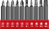 - В комплекте 10 бит по 50 мм: PH0, PH1, PH2, PZ1, PZ2, SL4, T10, T20, HEX4, HEX5