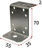 Крепежный уголок KUZ прост в установке, поскольку не требует врезки. Монтажные отверстия разного диаметра дают возможность выбрать вид крепежа и придать тем самым необходимую жесткость конструкции. Холоднокатаная сталь толщиной 2 мм обеспечивает отличную несущую способность, а оцинковка изделия делает его устойчивым к коррозии.