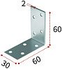 Уголок крепежный 60х60х30 мм, оцинкованная сталь