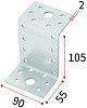 Крепежный уголок 55х105х90х2,0 мм Z-образный усиленный KUZUS, оцинкованная сталь применяется для крепления деревянных конструкций как между собой, так и к бетонным основаниям, особенно в случаях нахождения конструкции в агрессивной среде: повышенная влажность, кислотность, щелочность, контакт с водой (особенно морской), резкие перепады температуры и давления.