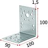Уголок крепежный 90х100х100х1,5 мм KU, оцинкованная сталь