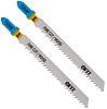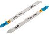 Bimetall представляет из себя высокоэластичное, неразрывное соединение полотна самой пилки из высокоуглеродистой инструментальной мягкой стали HCS, а на ней - полоски быстрорежущей, отлично закаленной, твердой и прочной стали HSS, по которой и нарезается зуб. В итоге такого соединения получается универсальная очень гибкая, неломкая пилка с твердым зубом, что значительно увеличивает ресурс ее работы и пригодность как для кривых узких линий любого фигурного реза, так и для чистого прямого реза. Для криволинейного реза лучше использовать узкую и короткую пилку комбинации Bimetall.